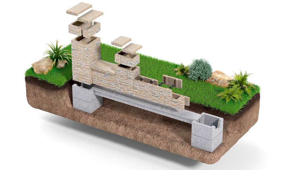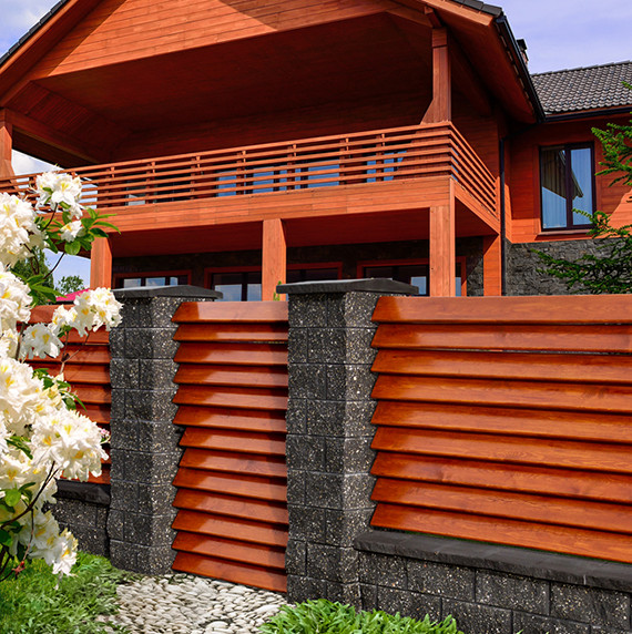 Nowoczesny system ogrodzeniowy, który charakteryzuje się prostymi kształtami. Delikatna linia fug podkreśla geometryczny charakter całości.