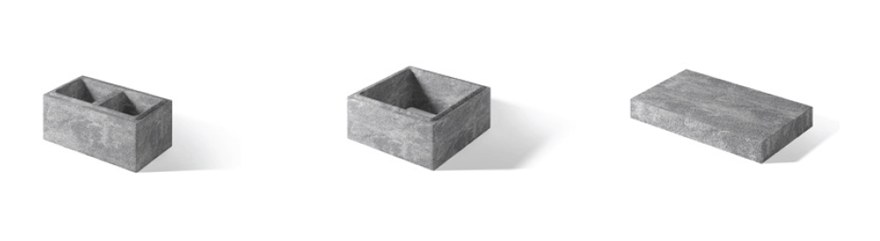 System oparty na pustaku Cubo składa się z dwóch elementów, choć ułożenie ogrodzenia możliwe jest także przy wykorzystaniu wyłącznie jednego z nich. Budowa jest zatem niezwykle prosta a dzięki rozmiarom bloczków – również szybka. Do systemu dedykowane są daszki płaskie z gładkim licem.